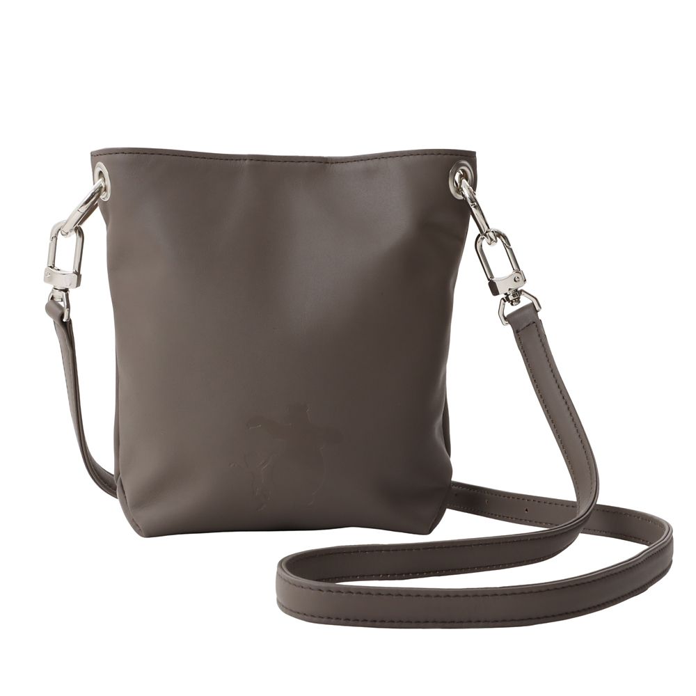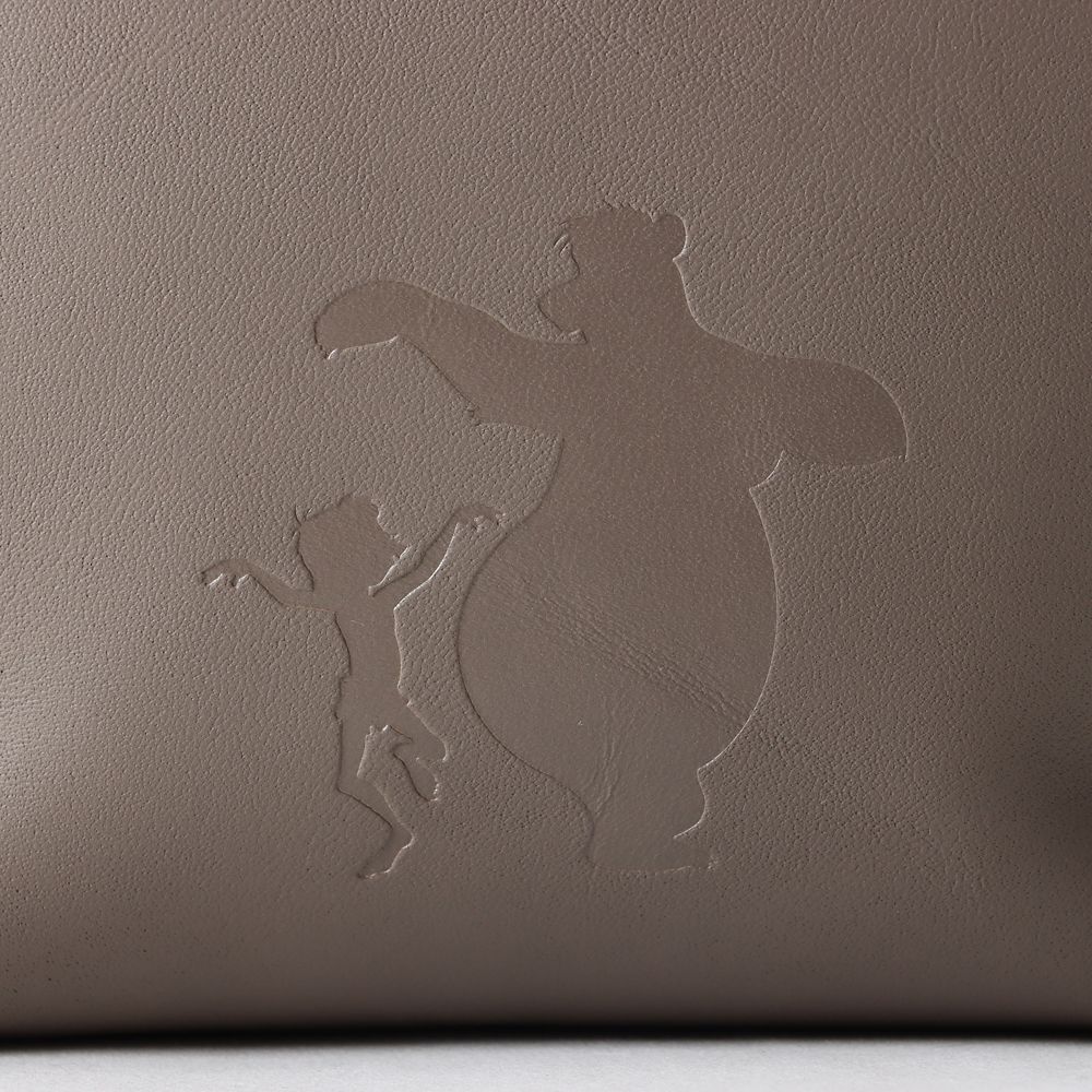 季節を問わず使いやすいマットな質感のチャコールグレーのレザーを使用。踊る「モーグリ」と「バルー」をシルエットで表現、ファン必見のバッグです。