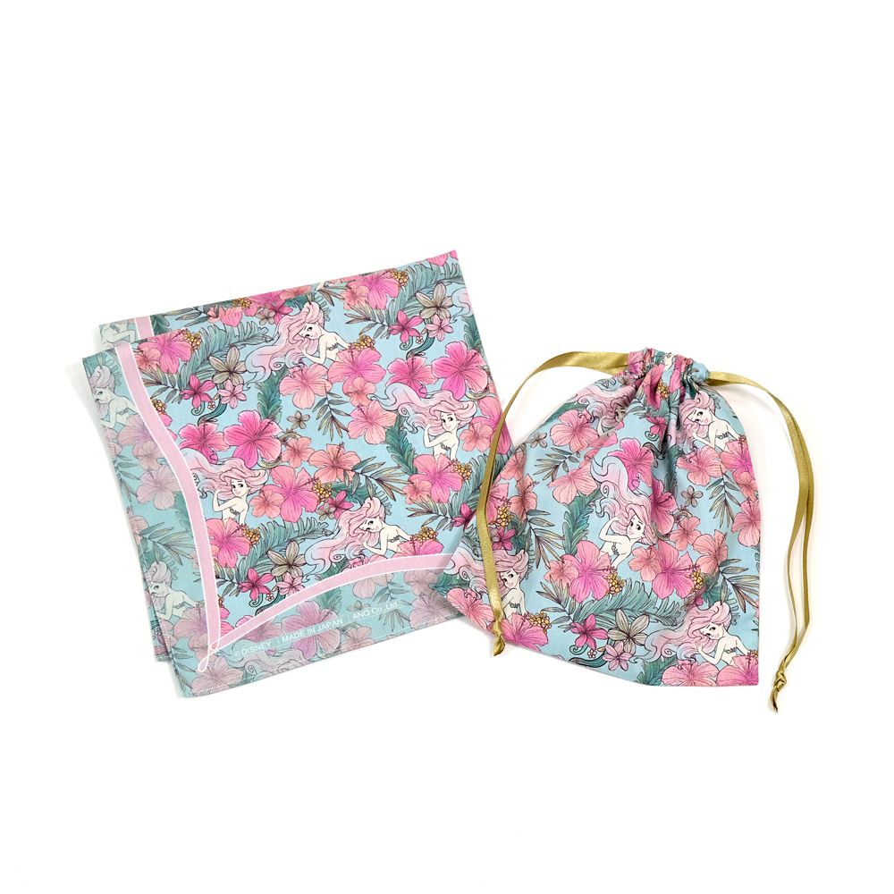 ちょっとしたギフトにぴったりの「アリエル」デザインハンカチ巾着セットが登場。
