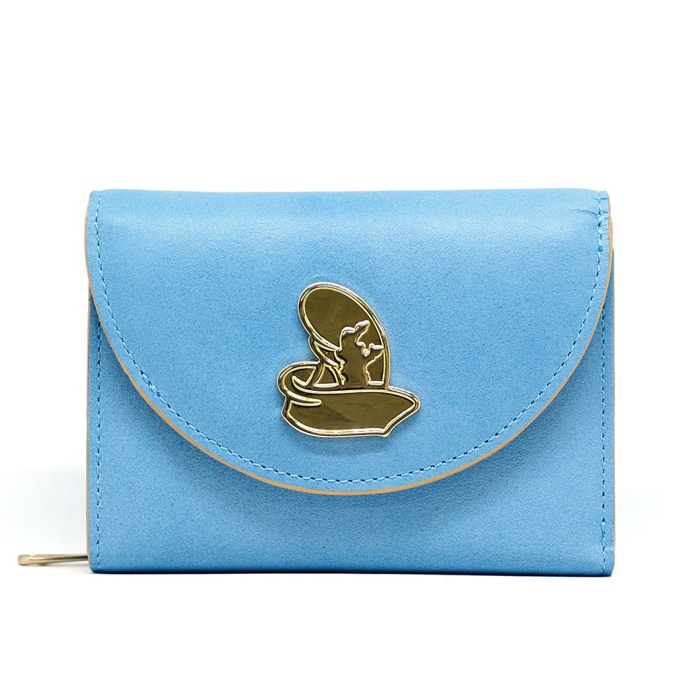 スタイリッシュでありながらも女性らしいフォルムのラウンド型のフラップウォレットです。表面にはオリジナル製作の「ダンボ」の”帽子”をイメージしたゴールドチャームをあしらっています。側面のコバ塗りは、アクセントとして裏地にも使用した淡いオレンジを使用。日常に馴染むよう、あくまでシンプルに仕上げました。