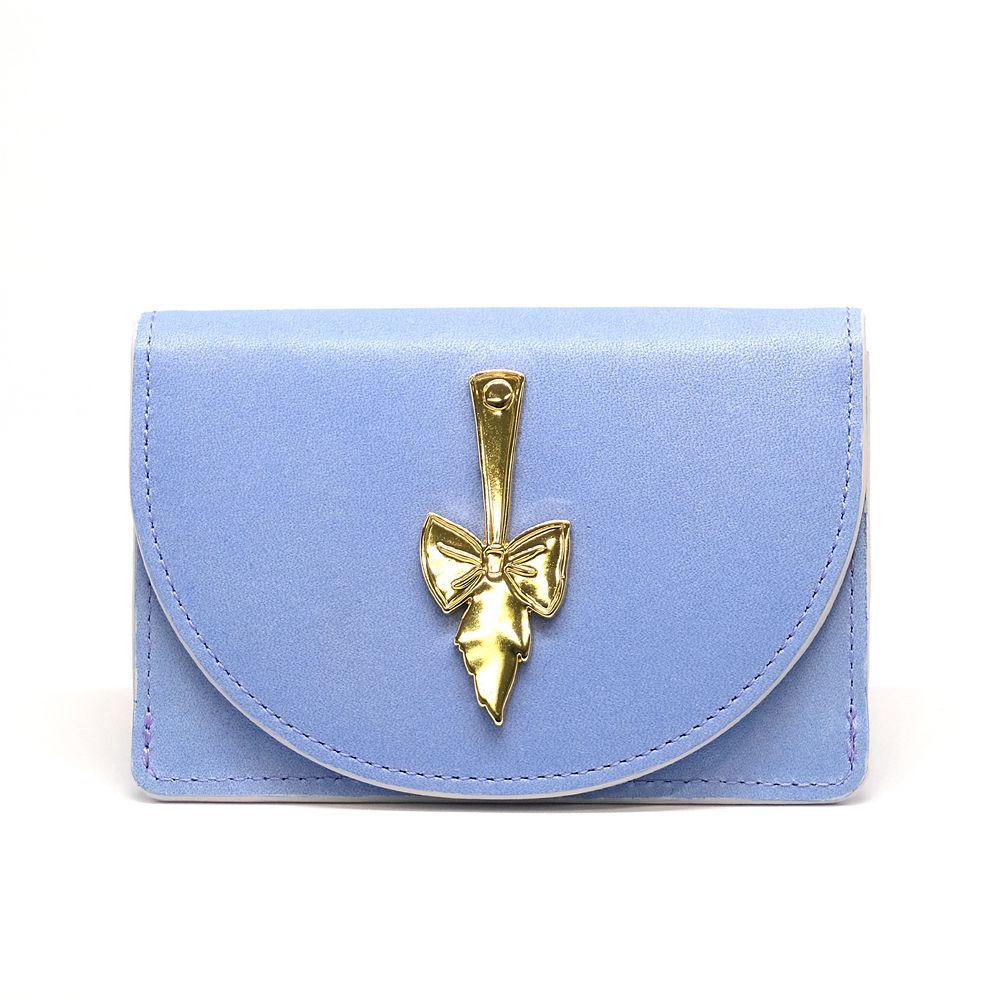 スタイリッシュでありながらも女性らしいフォルムのラウンド型のカードケースです。表面にはオリジナル製作の「イーヨー」の”しっぽ”をイメージしたゴールドチャームをあしらっています。側面のコバ塗りは、アクセントとして裏地に使用した淡いピンクを使用。日常に馴染むよう、あくまでシンプルに仕上げました。