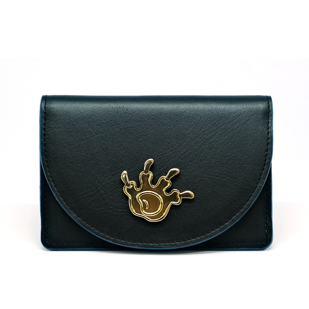 スタイリッシュでありながらも女性らしいフォルムのラウンド型のカードケースです。表面にはオリジナル製作の「ダンボ」の”帽子”をイメージしたゴールドチャームをあしらっています。側面のコバ塗りはアクセントとして「スティッチ」のボディカラーのブルーを使用。日常に馴染むよう、あくまでシンプルに仕上げました。