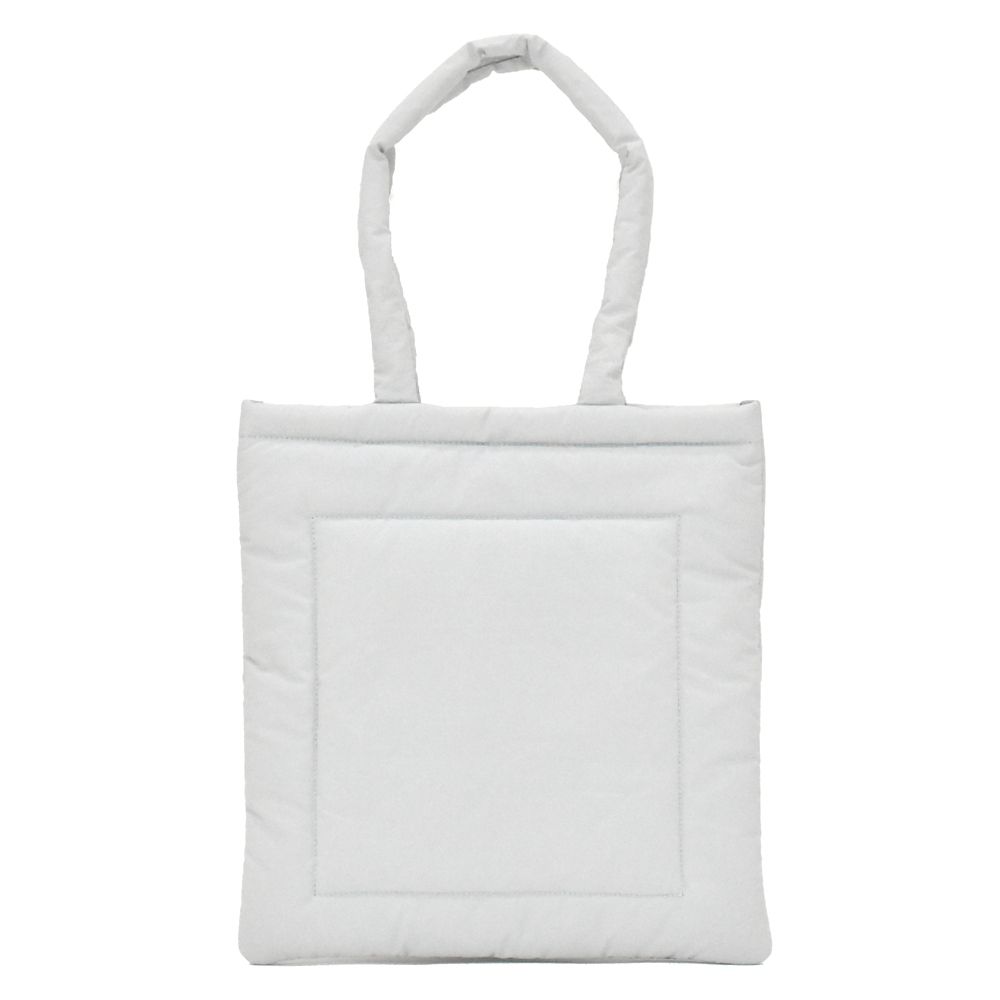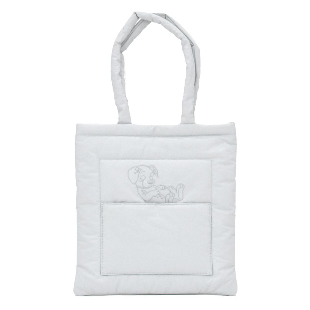 お布団やクッションのような優しい触り心地が特徴のパデッドトートバッグです。もこもことした質感と眠った子犬がとにかくかわいいデザインです。