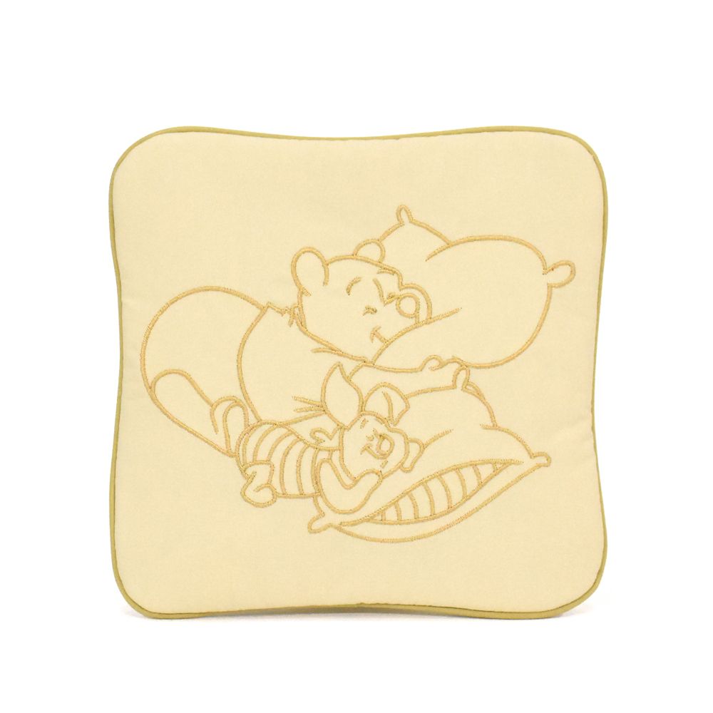 寄り添って眠る「プーさん」と「ピグレット」の刺繍