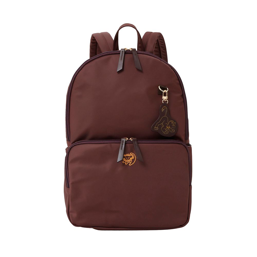 フロント中央の刺繍は、壁に描かれた子供の頃の「シンバ」を施されており、ゴールドのプリントで表現された「シンバ」のチャームは取り外し可能です。更に内側には、「シンバ」、「ナラ」、「ティモン」、「プンバァ」、「ザズー」、サバンナの「仲間たち」が総柄でプリントされています。外出先でPCリュックを開くたびに可愛らしい「シンバ」たちに出会うことができます。