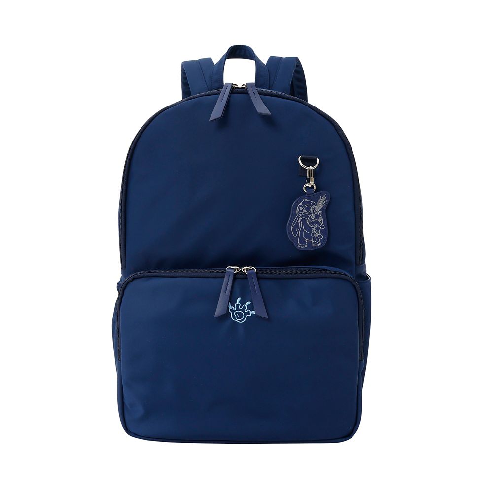 フロント中央の刺繍は、「スティッチ」の足跡が施されており、シルバーのプリントで表現された「スティッチ」のチャームは取り外し可能です。更に内側には、「スティッチ」、「スクランプ」が総柄でプリントされています。外出先でPCリュックを開くたびに「スティッチ」たちに出会うことができます。