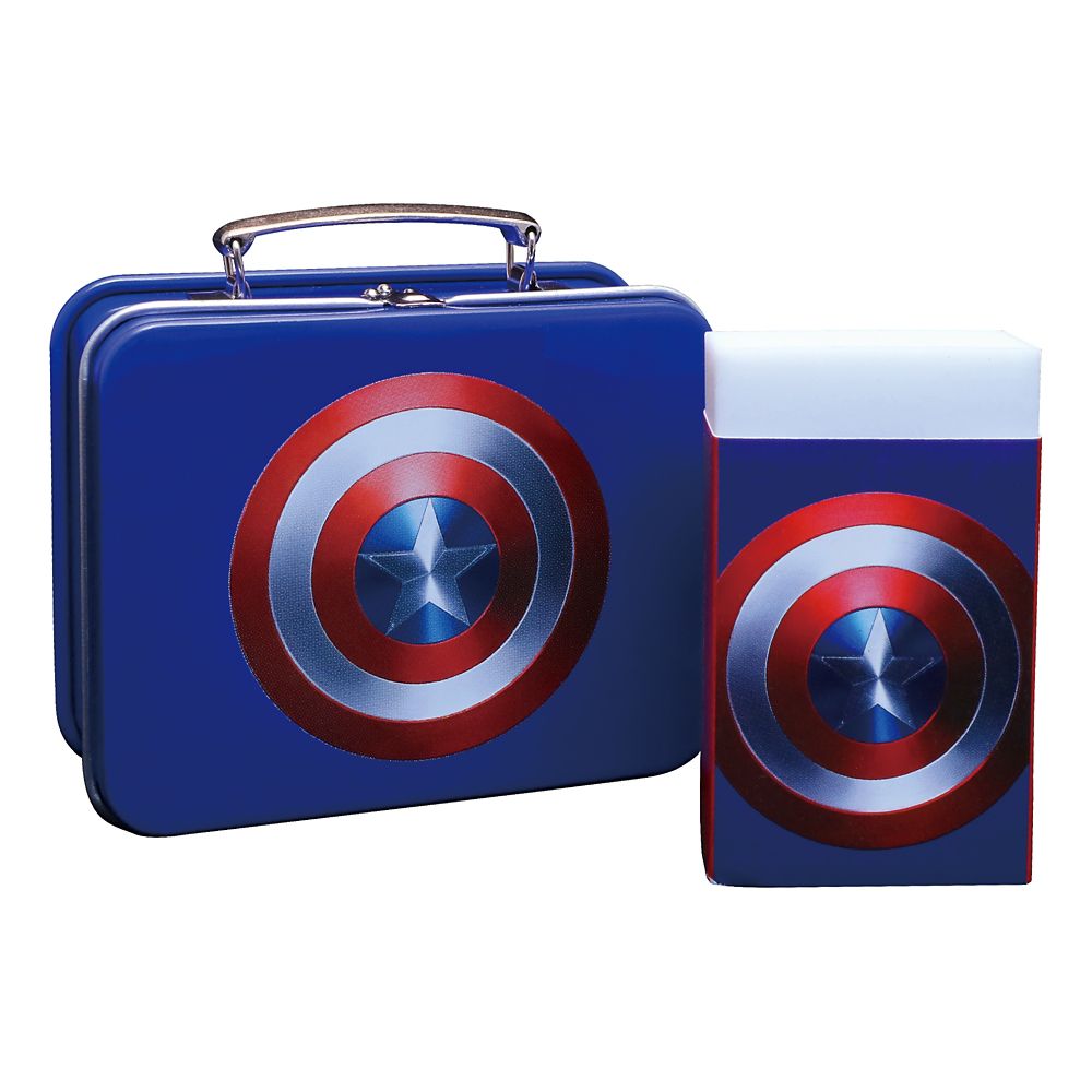 『マーベル/インフィニティ・サーガ』のキャラクターやアイテムがデザインされた、缶ケース入り消しゴムが登場!ラインナップは、キャプテン・アメリカのシールドといった劇中に登場したアイテム、ブラック・ウィドウやロキといったキャラクターなど、全10種。缶ケースは、小物入れとしても使用することができるぞ。パッケージは、中に何が入っているか分からないワクワク感が楽しめるブラインドボックス仕様だ。