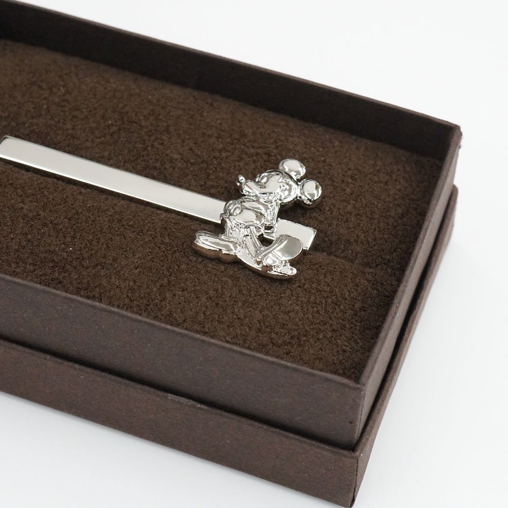 ミッキーモチーフのネクタイバー。 シルバーカラーが高級感と胸元のアクセントを演出します。 シックなオリジナルBOX付き。 ディズニーがお好きな方へのプレゼントにもおすすめです。