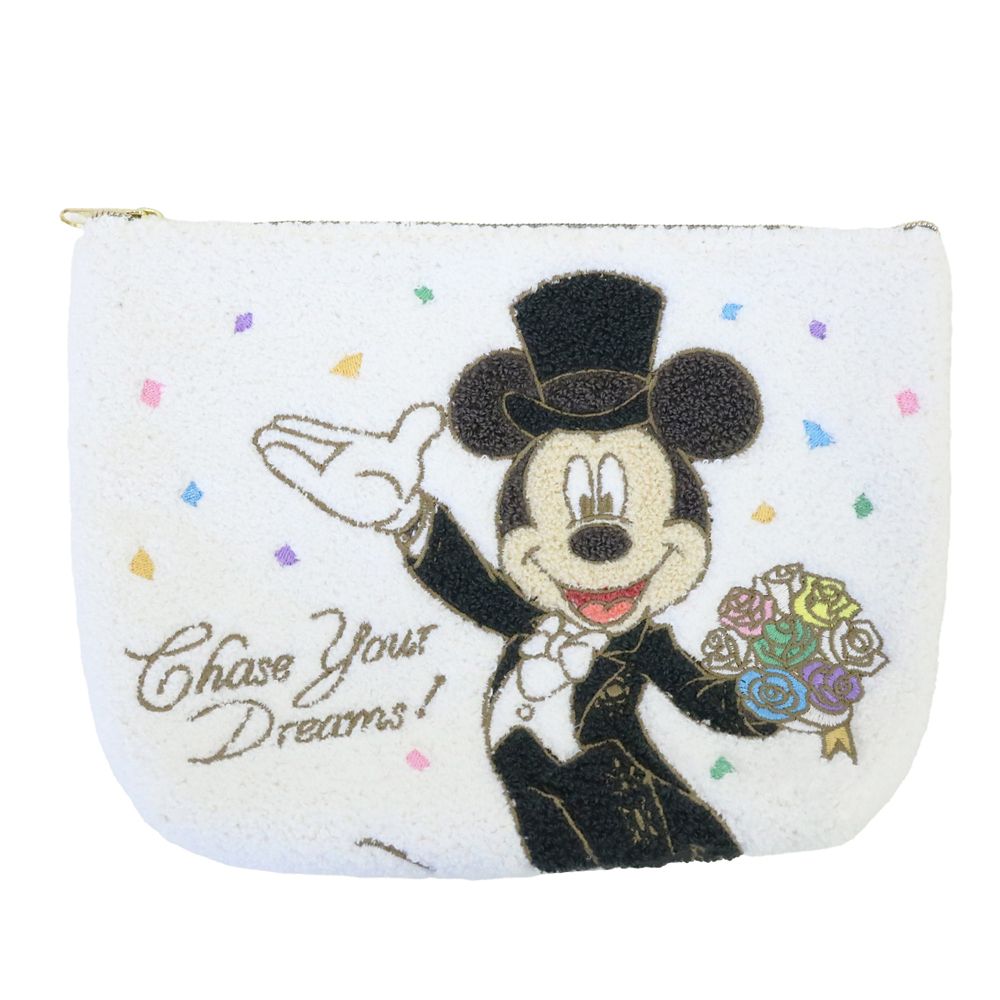サガラ刺繍で表現されたミッキーが立体的で温かみのある風合いのポーチです。日常使いにも特別なギフトにもおすすめのアイテムです。
