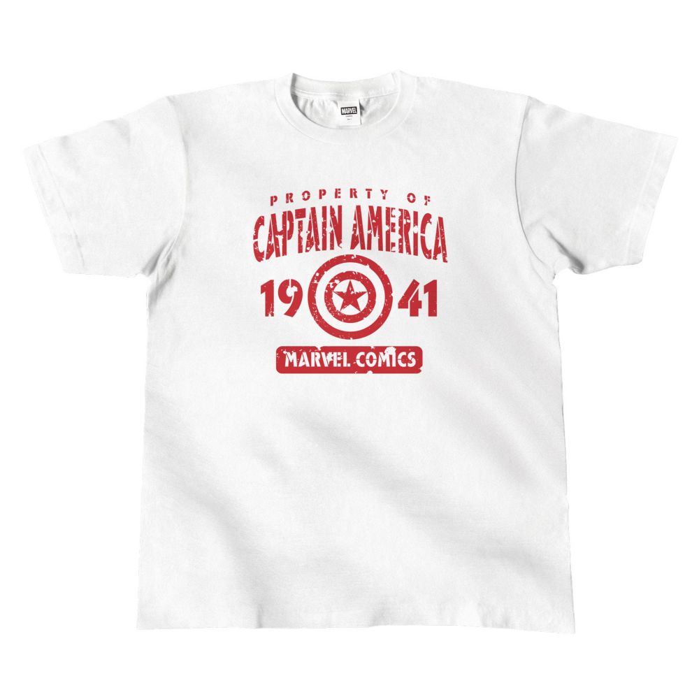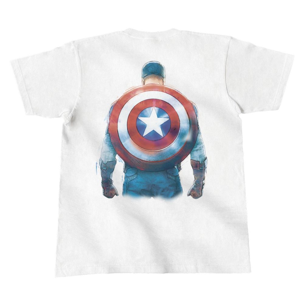 キャプテン・アメリカのTシャツ(白)。前と後ろにプリントあり。
