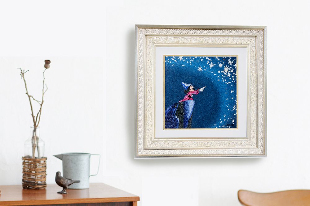 このジュエリー絵画®は、ルビーやラピスラズリなど、魅力的な宝石たちで、色褪せることなく世界中で愛され続ける夢と魔法の世界を描き上げています。