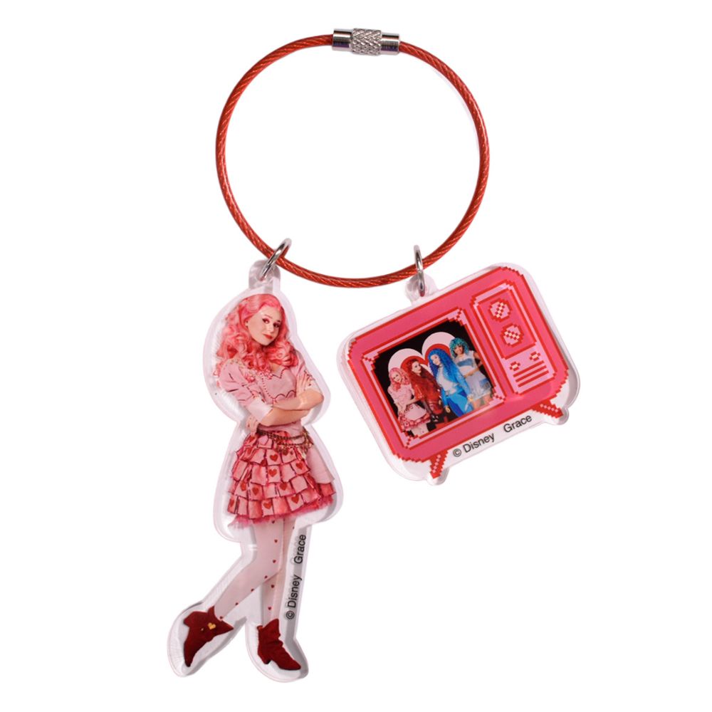 こちらは、『ディセンダント ライズ・オブ・レッド』に登場する若き日の「ハートの女王」「ブリジット」、TVの中には「ブリジット」、「レッド」、「クロエ」、「シンデレラ」がデザインされた2連アクリルキーホルダーです。