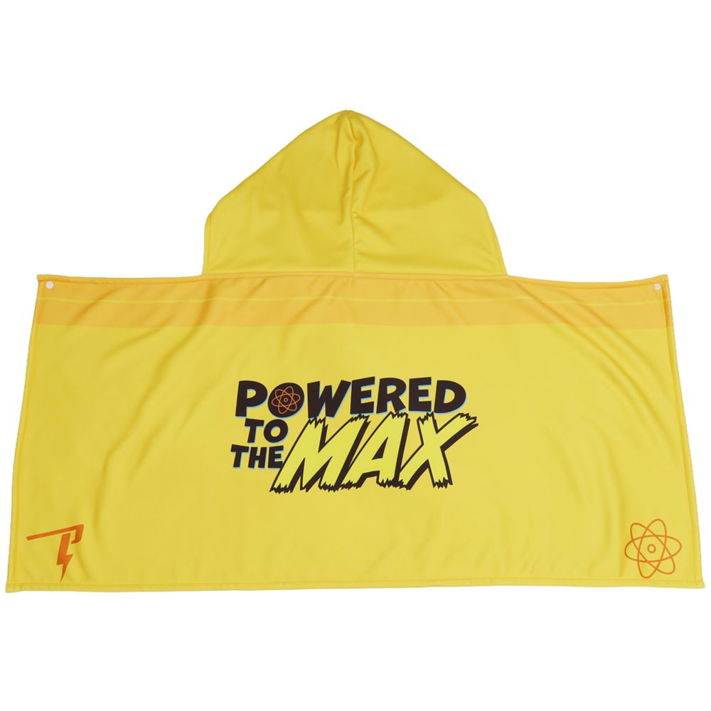 「マックス」が憧れている「パワーライン」の衣装をイメージしてデザインされたフードタオル。