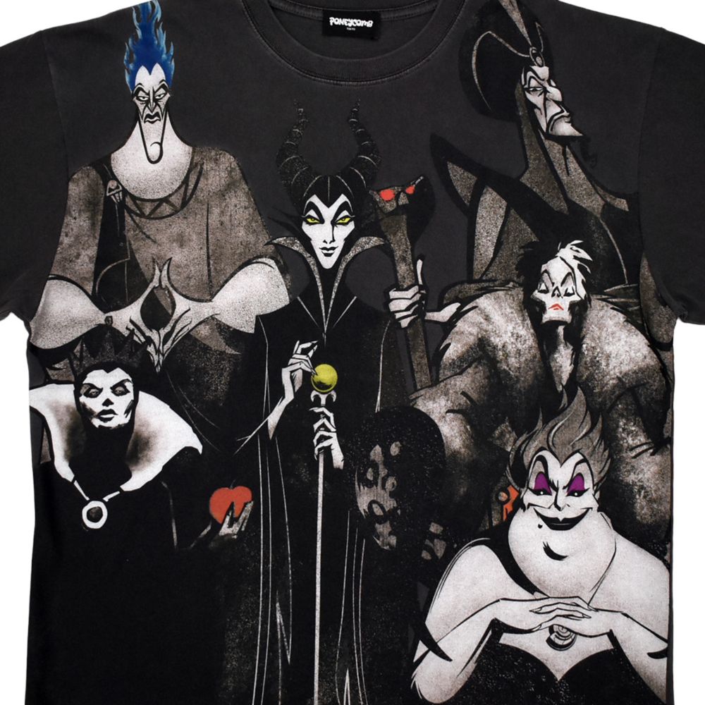 Tシャツのフロントいっぱいに「ディズニーヴィランズ」がデザインされたヴィンテージ風Tシャツです。