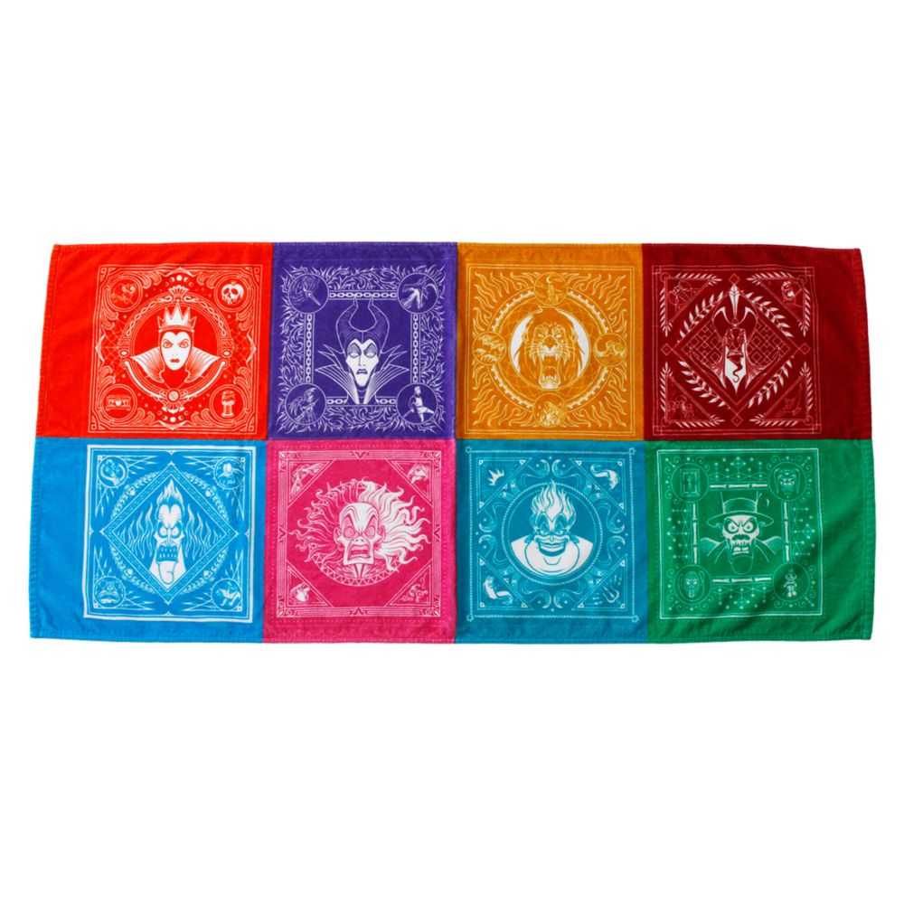 カラフルなバンダナ風デザインの中には女王、マレフィセント、アースラ、ジャファー、ドクター・ファシリエ、ハデス、クルエラ、スカーがデザインされています。