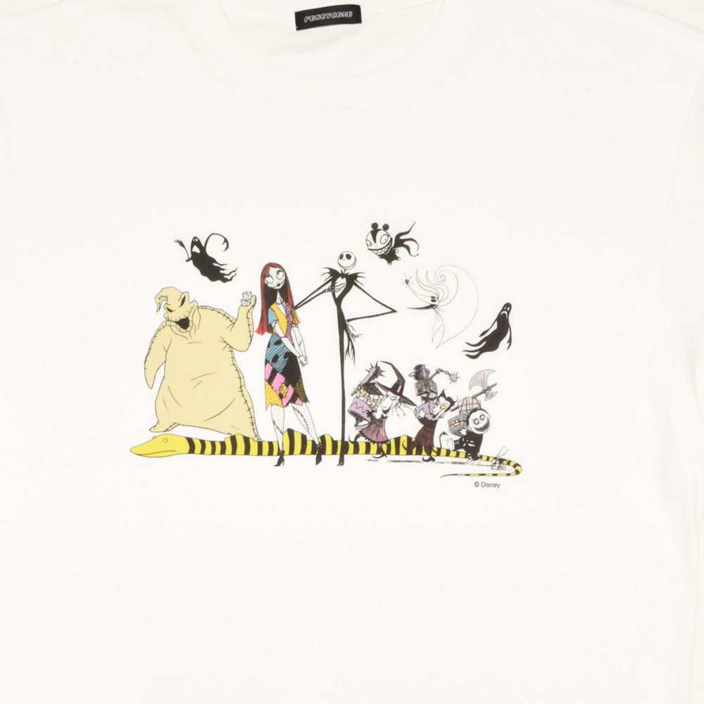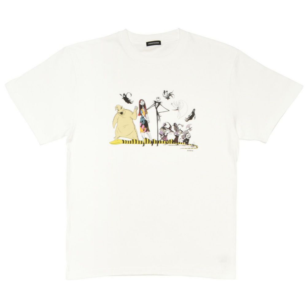 こちらは『ナイトメアー・ビフォア・クリスマス』のキャラクターが集合したイラストデザインのTシャツです。