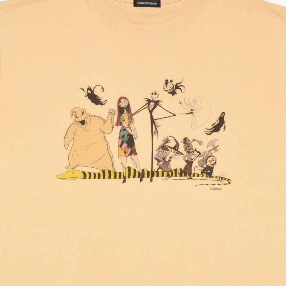こちらは『ナイトメアー・ビフォア・クリスマス』のキャラクターが集合したイラストデザインのTシャツです。