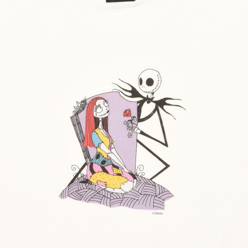 こちらは『ナイトメアー・ビフォア・クリスマス』の「ジャック・スケリントン」と「サリー」のイラストデザインのTシャツです。