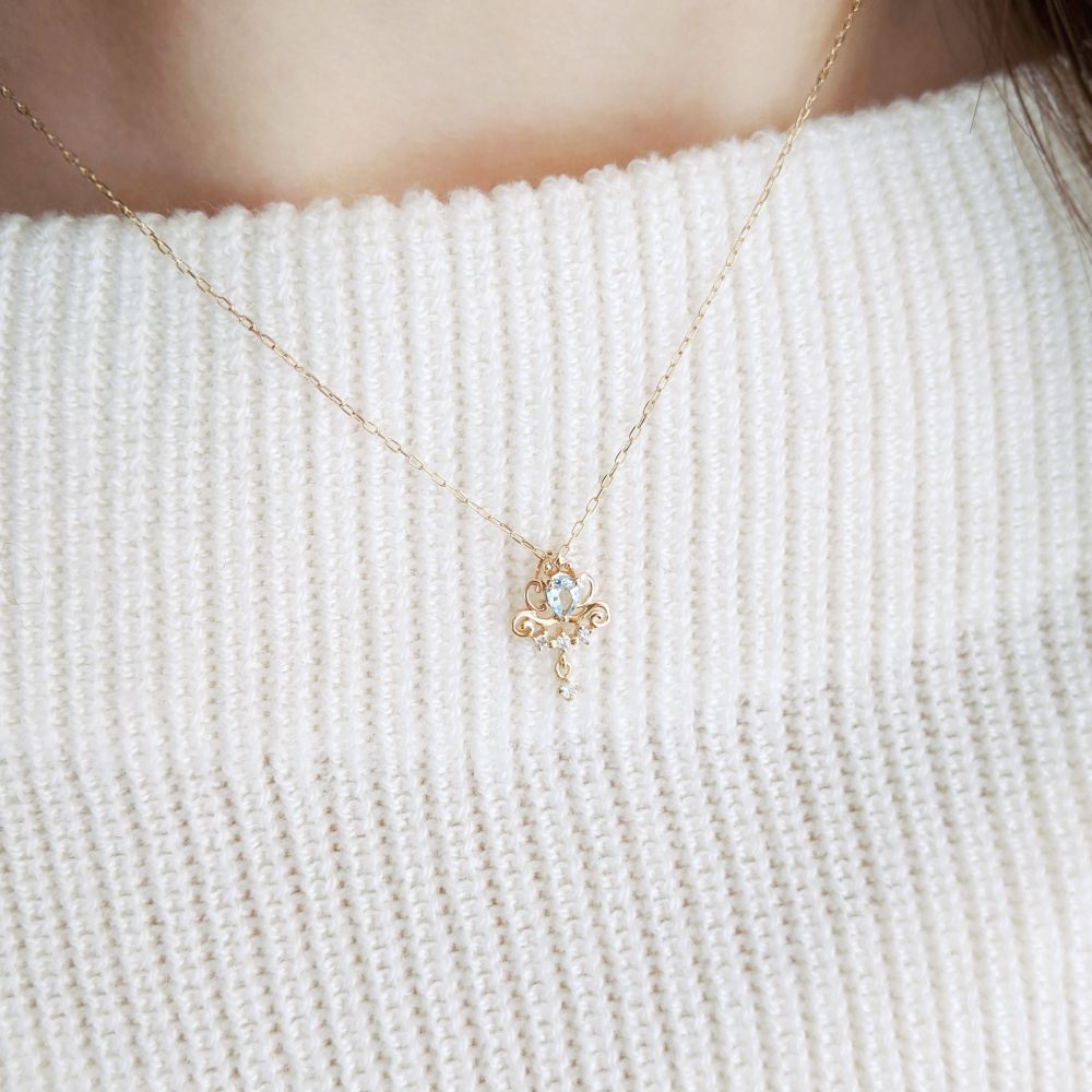 K10イエローゴールド、アクアマリン、ホワイトトパーズ、ダイヤモンド0.02ct