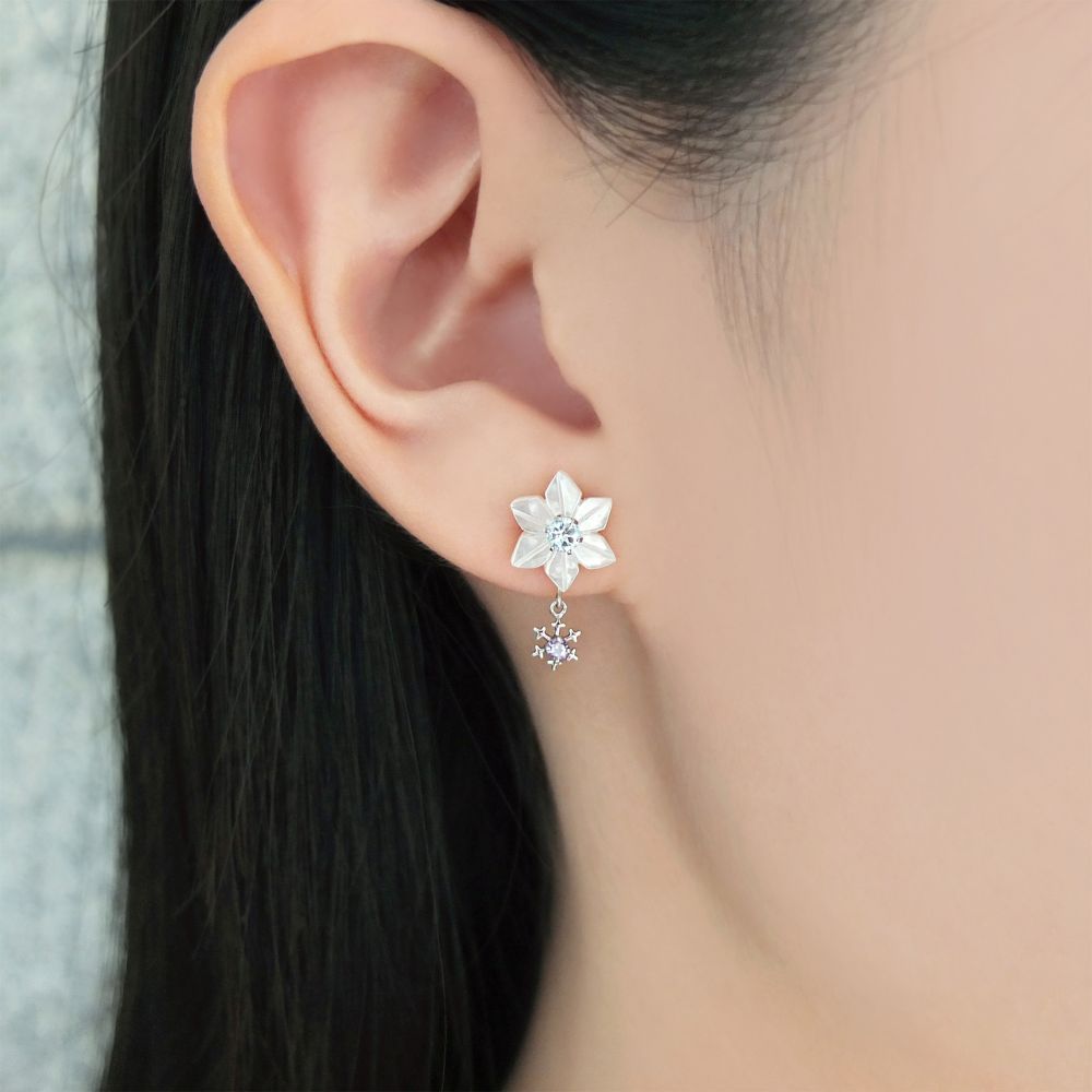 ブルートパーズは歌いながら煌めくエルサの魔法の輝きを表現、ライトアメジストはエルサのドレスをイメージしました。