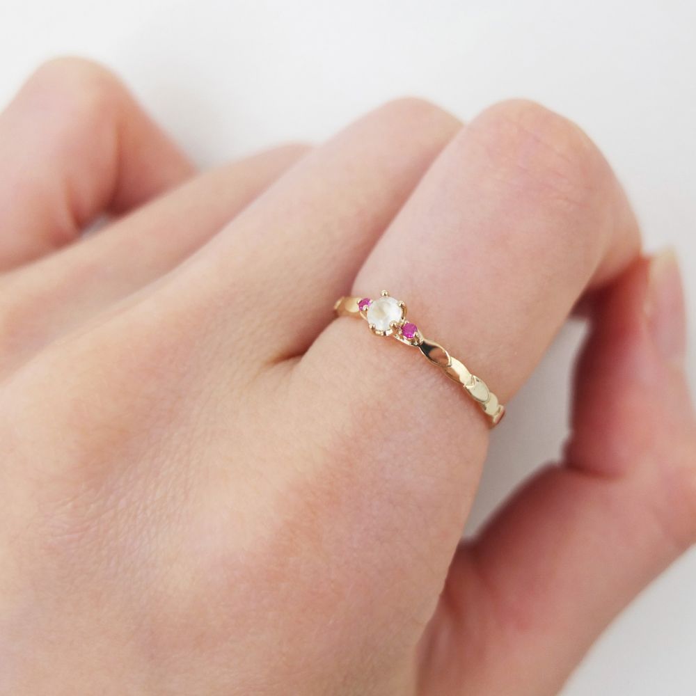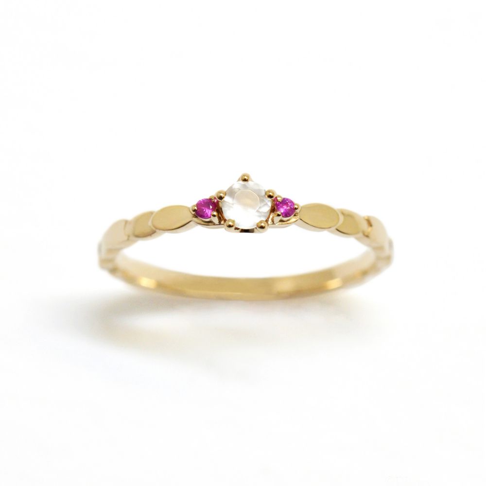 ビビットなカラーが優しい色のムーンストーンを際立たせ、キラキラと輝きます。