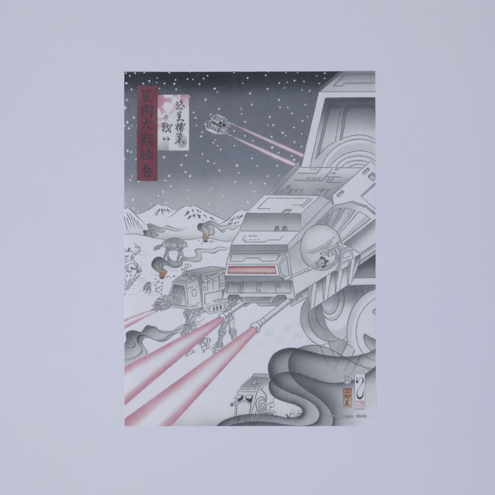雪景色は歌川広重風の暗めの色調で描かれ、白銀の中にAT-ATと反乱軍が対峙。