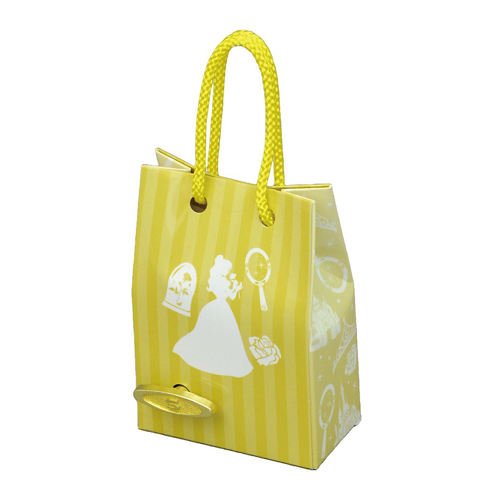 プリンセスの手描き風イラストが可愛らしい、ショッピングバッグ型オルゴール。背面の巻きカギを回すと「美女と野獣」のテーマ曲「Beauty and the Beast」のオルゴール音が流れます。
