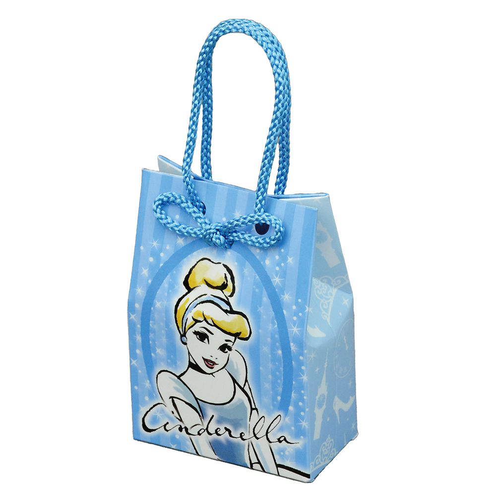 プリンセスの手描き風イラストが可愛らしい、ショッピングバッグ型オルゴール。背面の巻きカギを回すと「シンデレラ」のテーマ曲「Dream is wish your heart makes」のオルゴール音が流れます。
