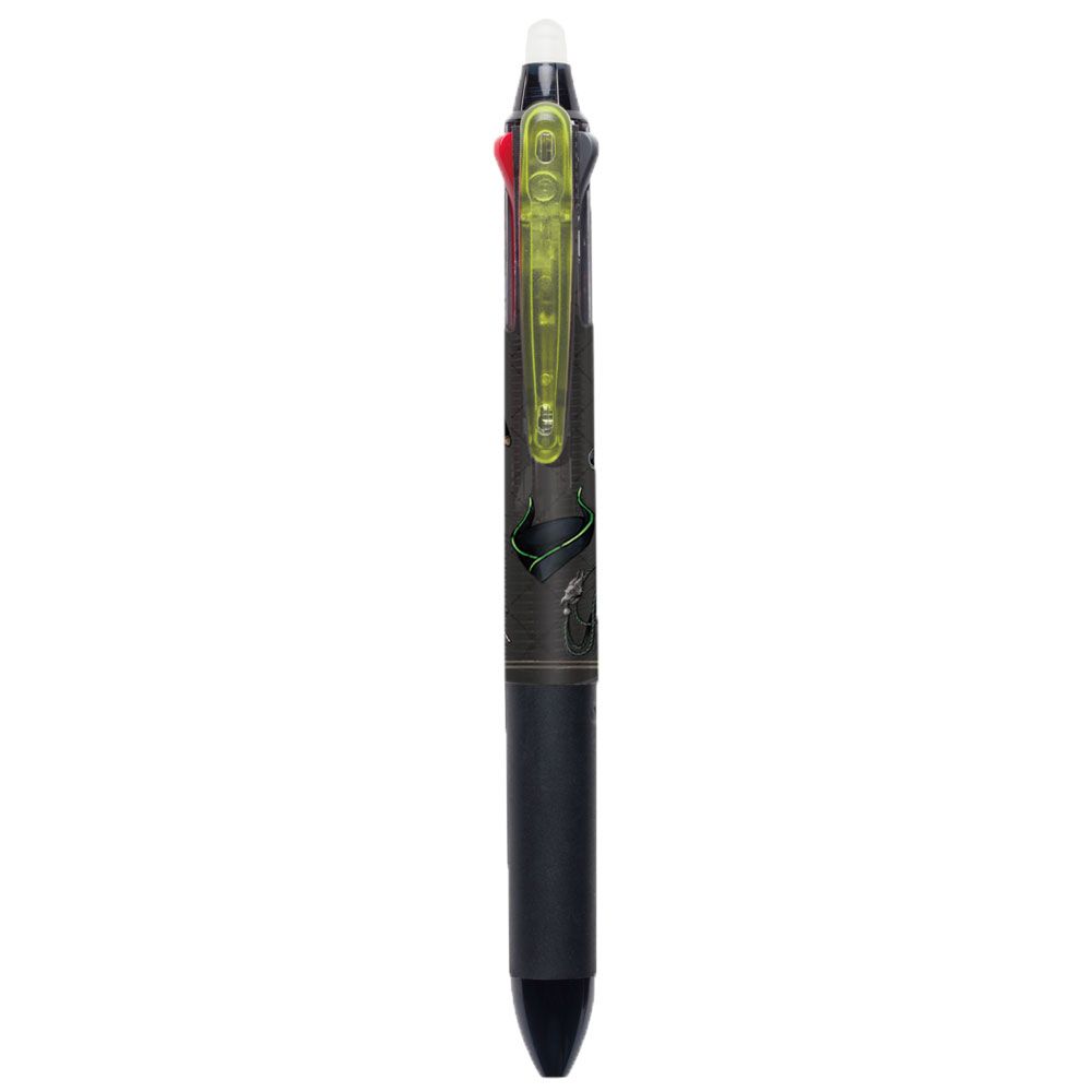 こすると消えるフリクションタイプのボールペン。ブラック、レッド、ブルーの3色で、ボール径は0.38mmと細め。ディアソムニア寮モチーフのデザイン。