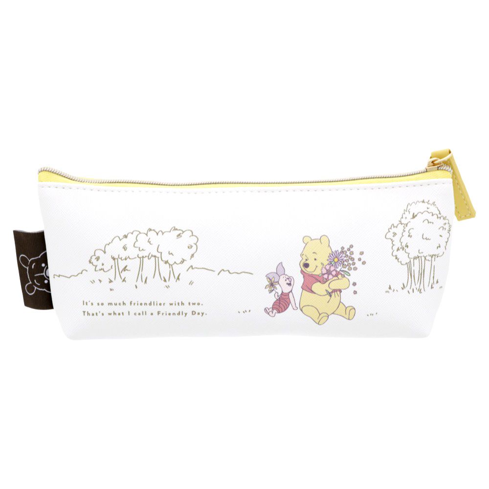 シボありPVCのスリムなペンケース、「ペンケースS」。 柄は、くまのプーさん。 プーさんとピグレットが仲良く手をつないでるデザイン。