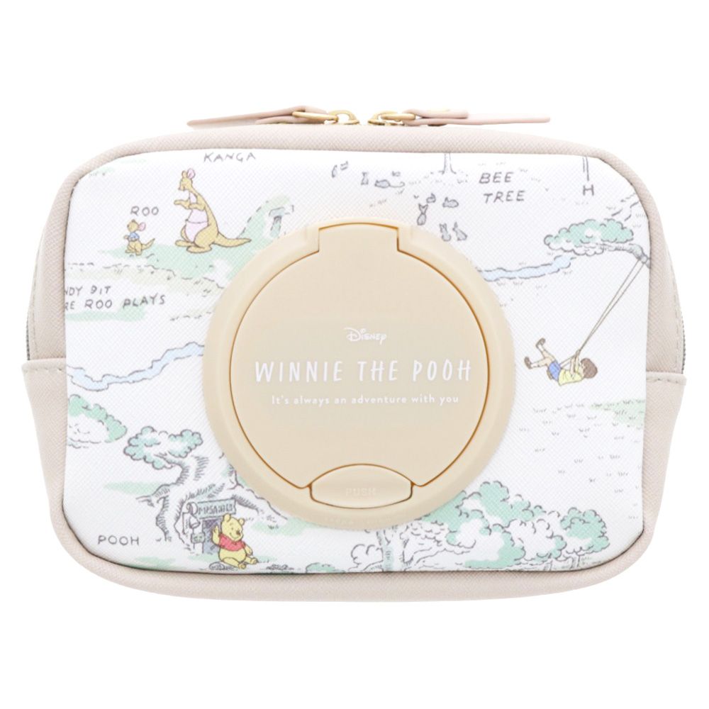 まあるいフタでリニューアル!シートと小物を一緒に携帯できる機能性ポーチ、seepo PUSH(シーポプッシュ)。 柄は、『くまのプーさん』で地図のデザイン。