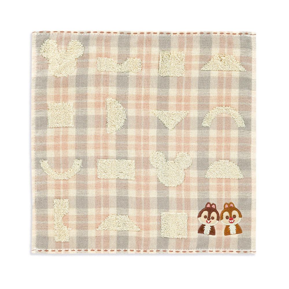 いろんな向きの積み木が並ぶかわいいミニタオル。どの柄がどの積み木と同じ形かな?
