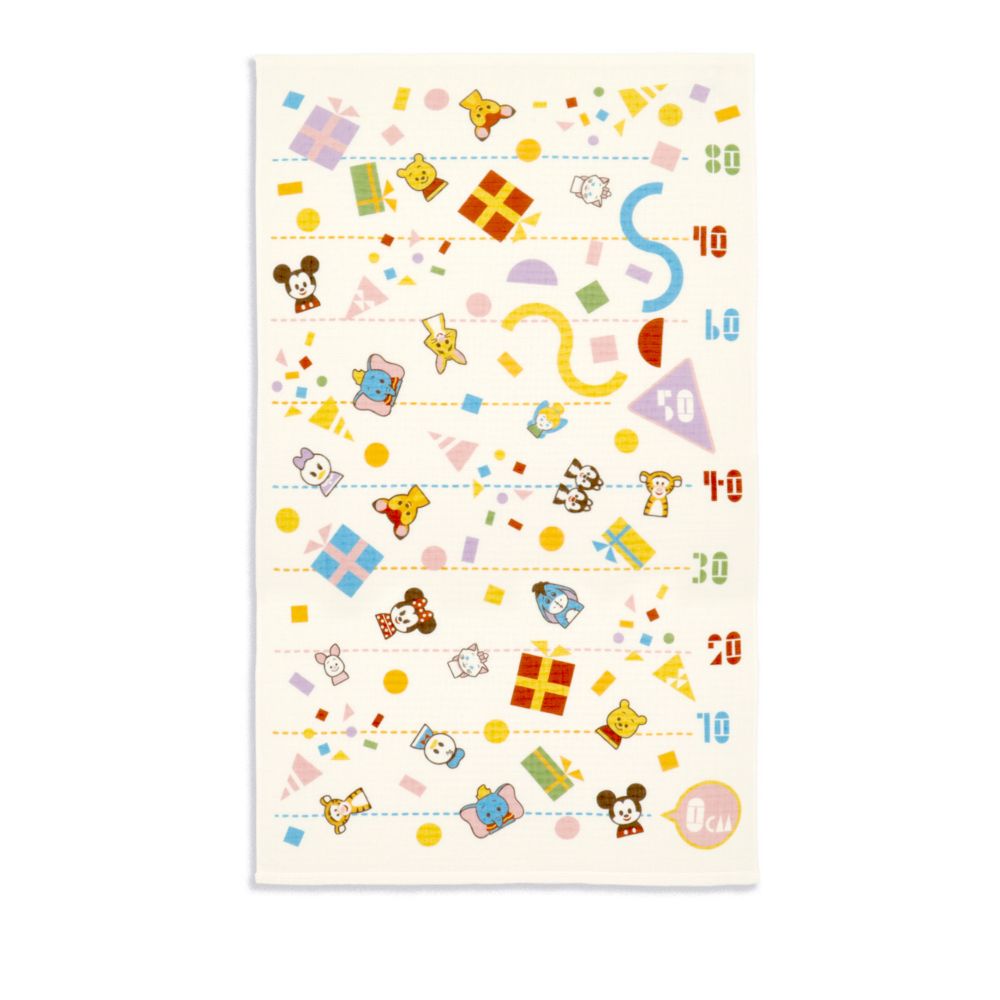 お子さまを寝かせて身長が測れるメモリのついた身長計タオルです。