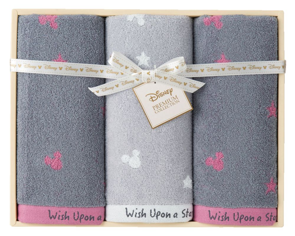 素材・デザインにこだわったプレミアムなタオル。無撚糸を使用しふわふわな肌触りに仕上げました。星柄に見え隠れするミッキーが大人かわいいタオルギフトです。