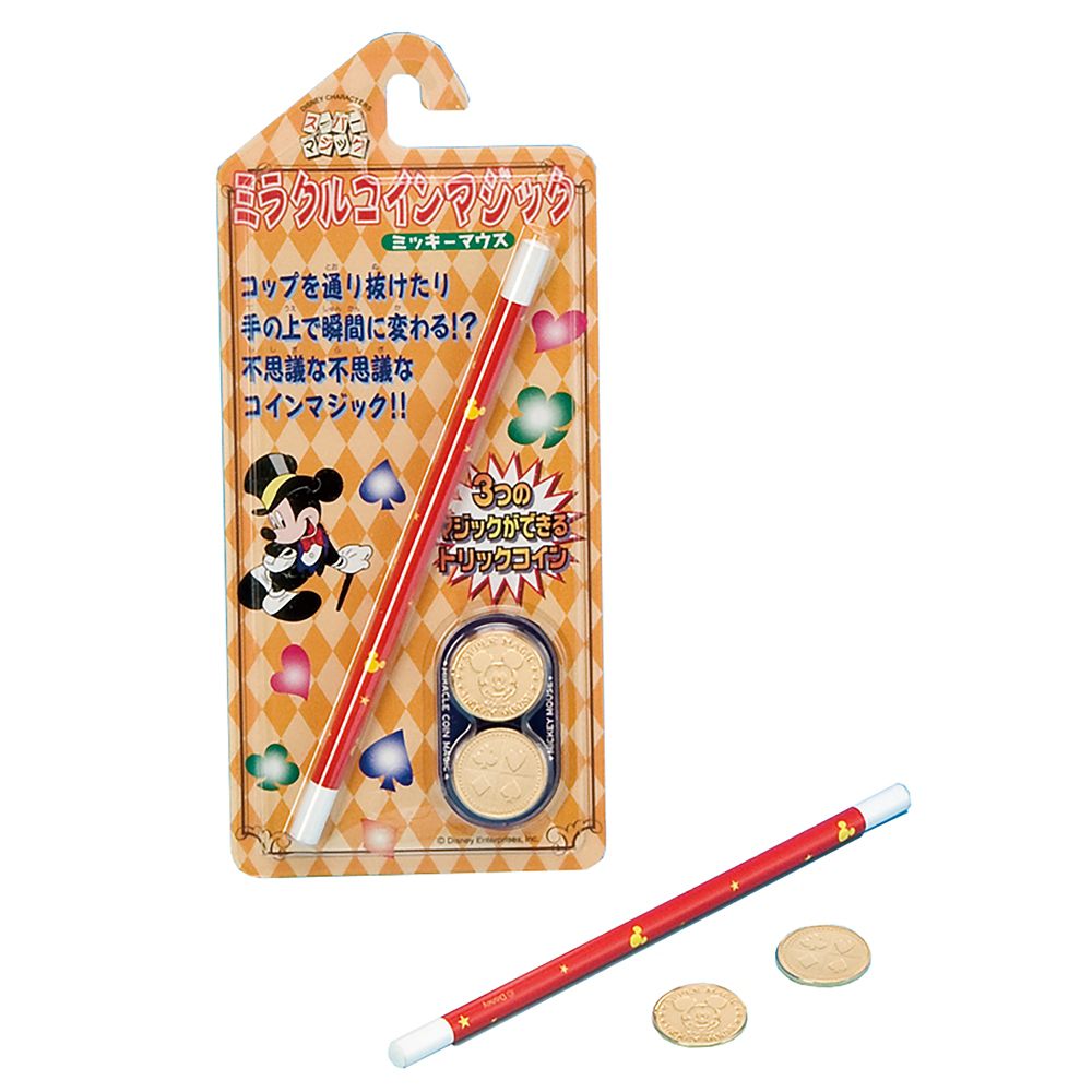 ミッキーマウスのコインと魔法のステッキを使うと、誰でも不思議なコインマジックを見せることができます。