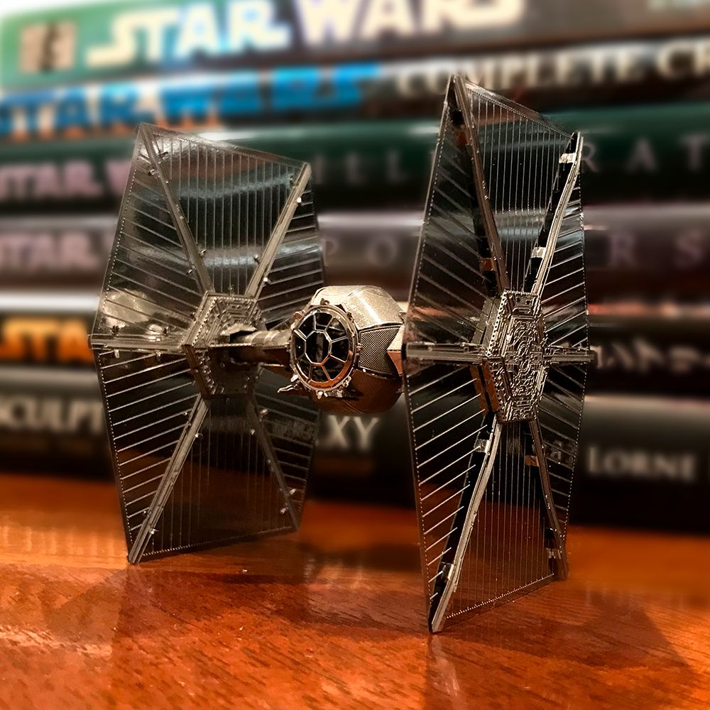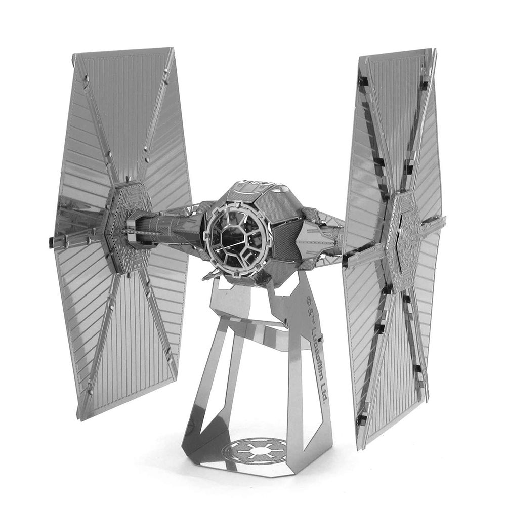レーザーの超細密加工によるハイクオリティーメタルモデル「メタリックナノパズル」にスター・ウォーズの『TIE ファイター』が登場!!メタルシートからパーツを取り外し、ペーパークラフトのように曲げたり、折ったり、差し込んでいくと、美しく輝く『TIE ファイター』が完成します。