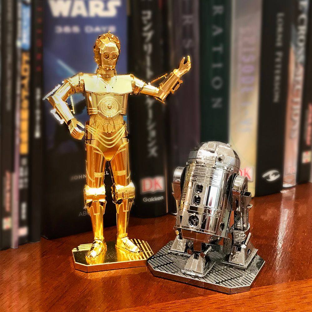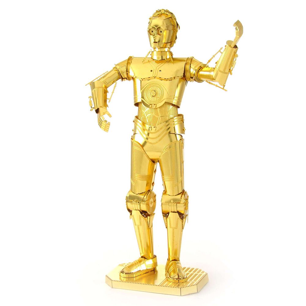 レーザーの超細密加工によるハイクオリティーメタルモデル「メタリックナノパズル ゴールド シリーズ」にスター・ウォーズの『C-3PO』が登場!!メタルシートからパーツを取り外し、ペーパークラフトのように曲げたり、折ったり、差し込んでいくと、美しく輝く『C-3PO』が完成します。