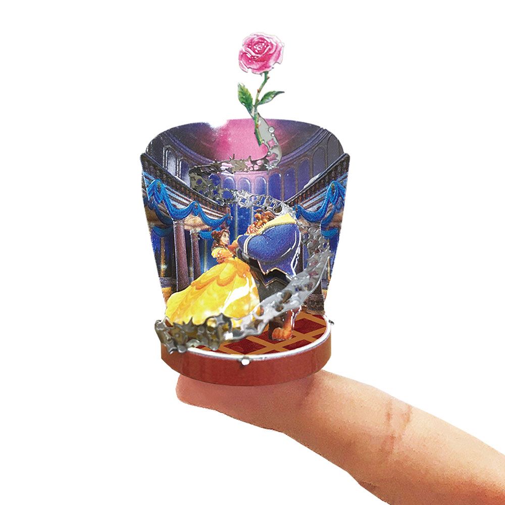 薔薇からの美しい光の中で踊るベルと野獣のロマンチックな情景が完成します。