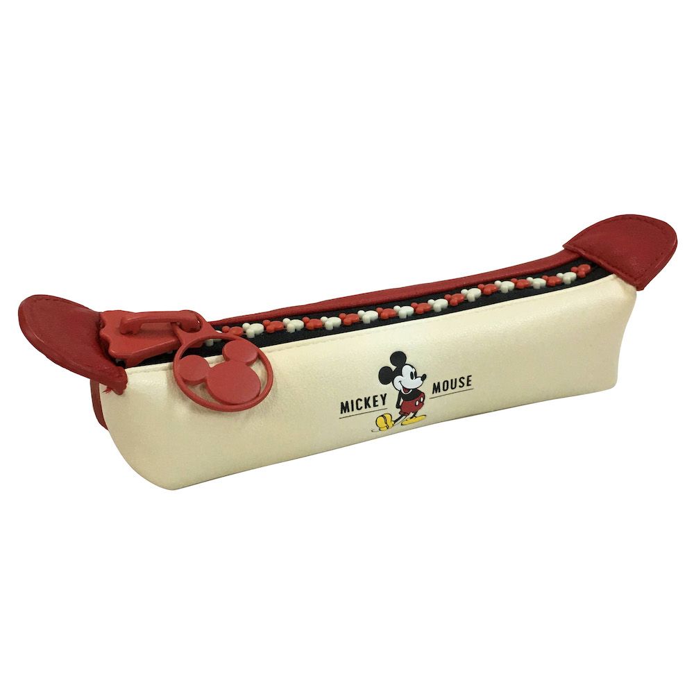世界初!ひとつひとつがミッキーのカタチの超ユニークなデザインのジッパーができました!!ペンケース本体はオフホワイト/レッドのレザー調生地に立体感のあるエンボス加工でプリントされたミッキー がワンポイント!つい見せびらかしたくなっちゃう!目立つこと間違いなしのミッキー愛溢れるアイテムです!!