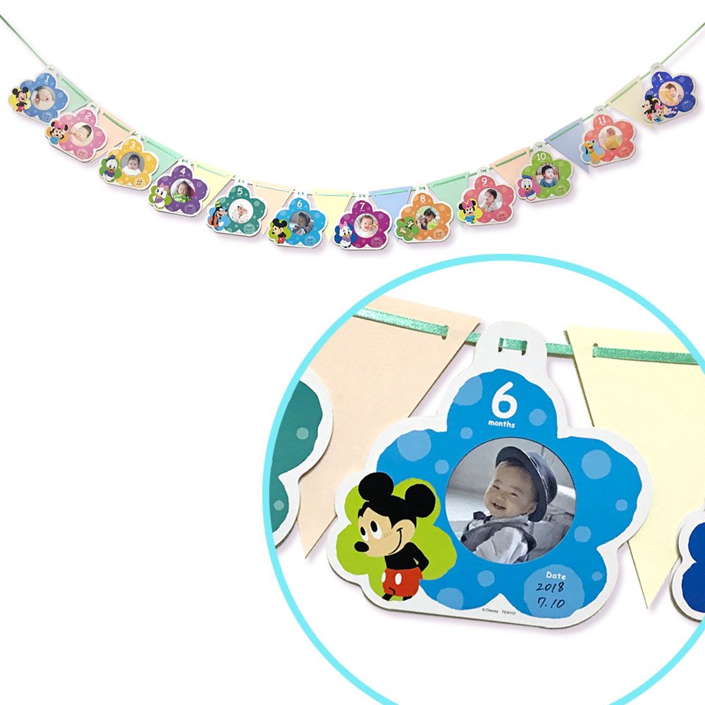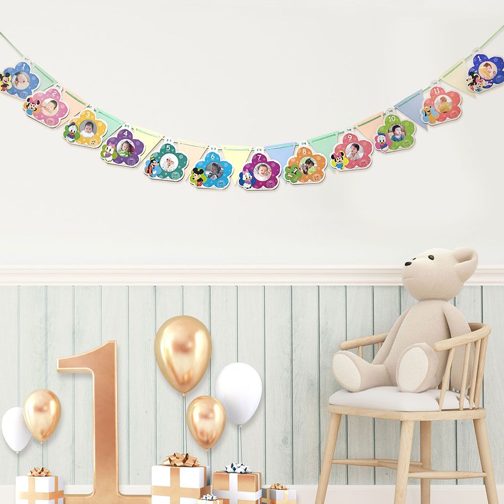 生まれてから1ヶ月ごとに、1歳までのお子様の写真が飾れるガーランド。付属のリボンにフラッグと一緒に通せば、お子様の成長が一目でわかる世界にひとつだけのオリジナルのガーランドが完成します。1歳のお誕生日のパーティーをかわいいガーランドで盛り上げちゃおう!