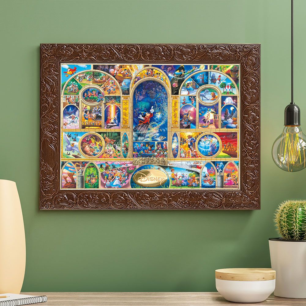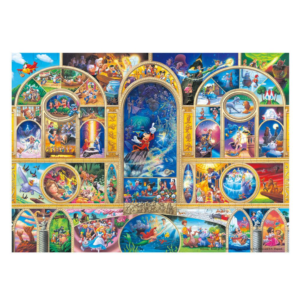 ミッキーマウスのデビュー作「蒸気船ウィリー」や短編作品「みにくいアヒルの子」、最初の長編作品「白雪姫」など60本もの映画作品、登場キャラクター数にして332、その名シーンが集まった、究極のディズニーオールキャラクタージグソーパズル!