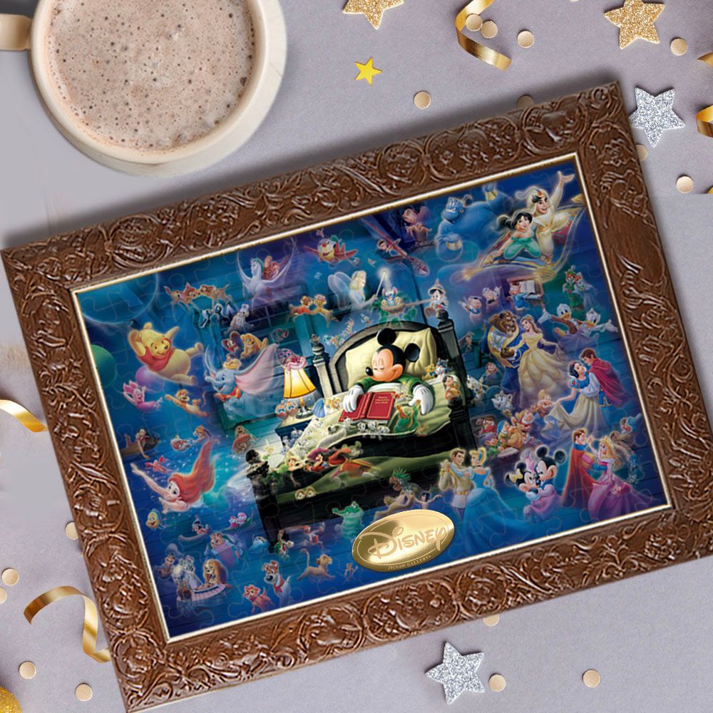 ミッキーが夢のなかで、ディズニーの世界を駆けめぐる!光を蓄えて暗闇で光るジグソーパズルなので、組んだあと別売の専用パネルに入れてお部屋に飾れば、月明かりに照らし出されたファンタジックな夢の世界を楽しむことができます。