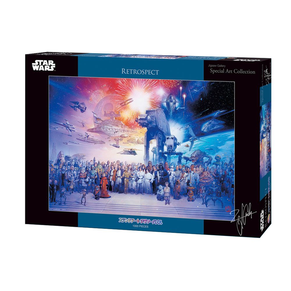 メインキャラクターから、名脇役、知る人ぞ知るキャラクターまで、余すことなく描かれており、その後方には、デススター、AT-AT、Xウィング、ミレニアム・ファルコンなど、帝国軍、反乱軍から共和国のものまで、主要のビークルが大集合!!