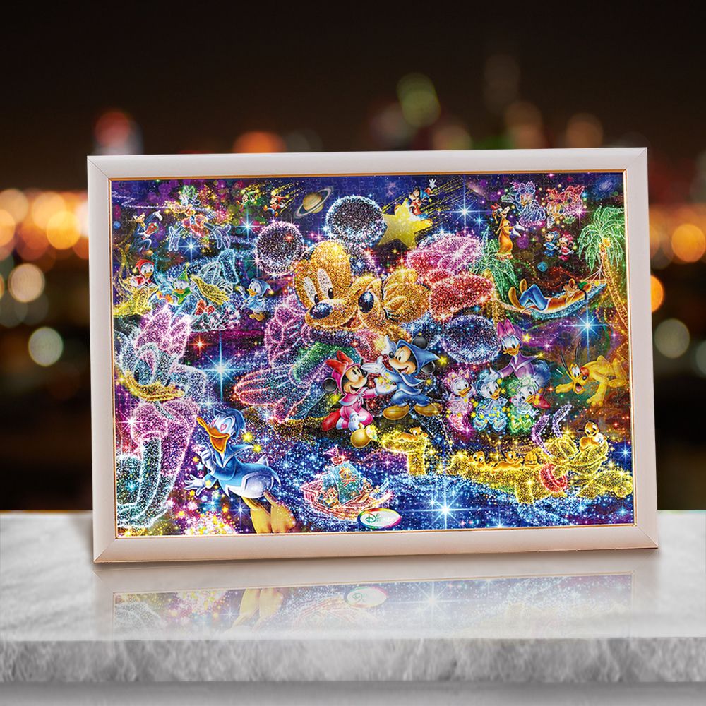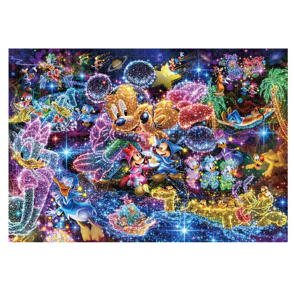 ミッキーたちが夜空に星で描いたものは、「夢」、「理想」、「希望」。どれも明るいものばかりです。その美し光景を、ピースが透明のステンドアート ジグソーパズルで、より光り輝やかせました。組み応え抜群の1000ピースで、その美しさを体験してみてください!
