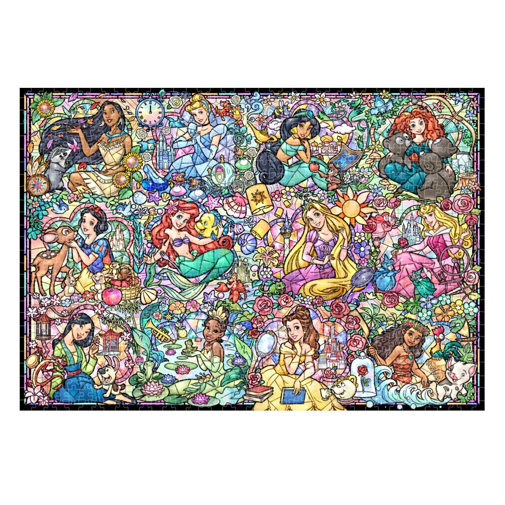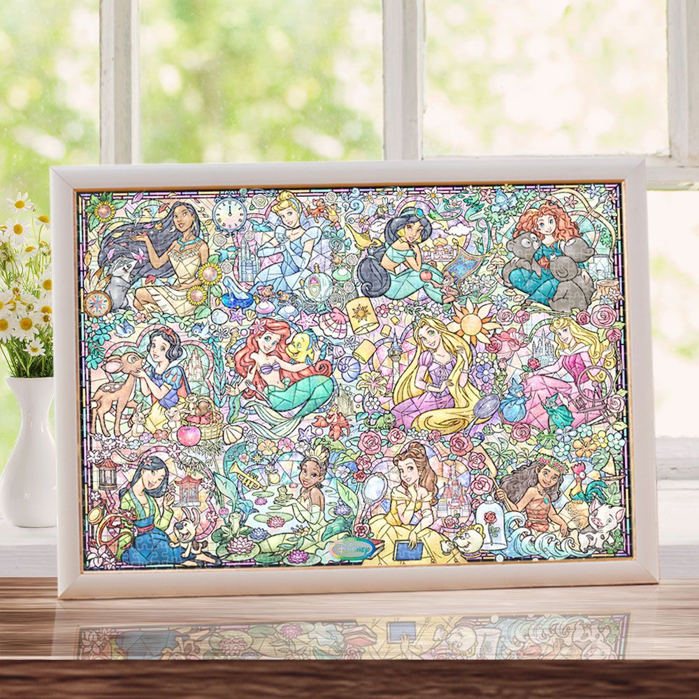 シンデレラやアリエルをはじめ、ムーラン、ティアナ、モアナ、ピクサー作品のメリダなど、12人のプリンセスに加え、約40体の仲間たちが豪華に描かれたステンドグラス!永遠の輝きを放つ心優しく美しい個性豊かなプリンセスの魅力がぎっしりと詰まった特別な絵柄です。「ピースが透明!ステンドアート・ジグソーパズル」で、光を通してより美しく、より輝いて魅せます。