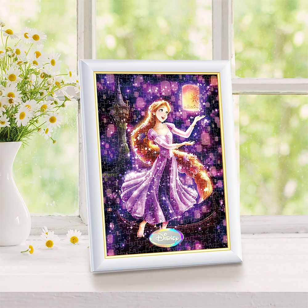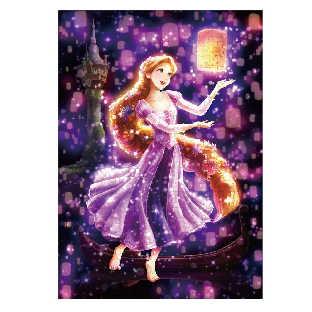 高い塔の中から出ることを許されずにいたラプンツェル。突然現れたフリンの案内で、ついに自分の誕生日の夜空に浮かぶ光の正体を確かめることができました。その美しい光を放つランタンに、心を踊らせ表情は輝いています。きらめくプリンセスたちの魅力を描いた〈トゥインクルシャワー・コレクション〉「ピースが透明!ステンドアート・ジグソーパズル」で、光を通してより美しく、より輝いて魅せます。