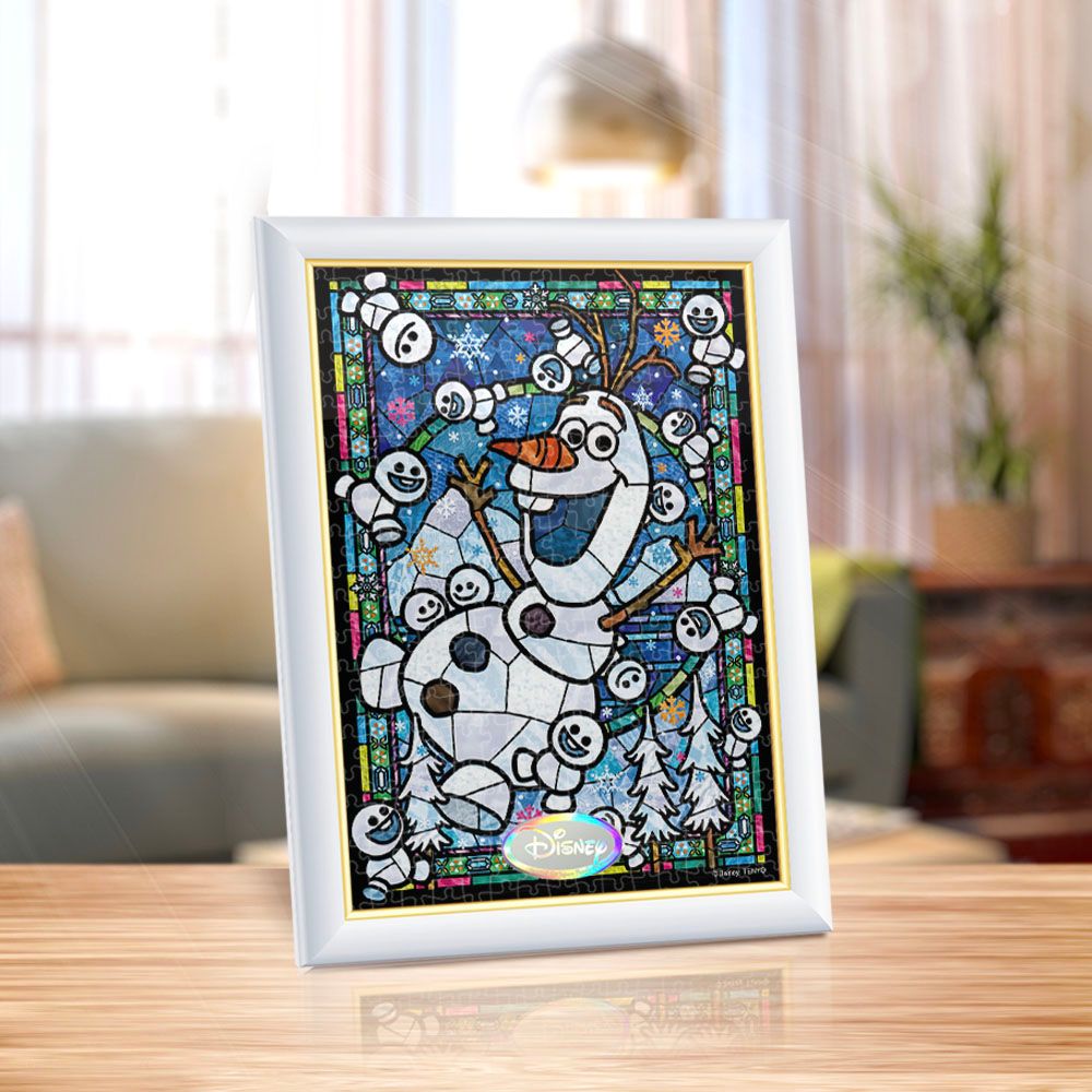 無邪気で人懐こくハグが大好きなオラフは、雪ダルマなのに太陽のもとで過ごすことを夢見ています。小さな雪ダルマスノーギースはエルサが風邪をひいた時、くしゃみをするたびに次々と現れ、その可愛さでオラフ同様大人気となりました。ピースが透明!だから、光を通してキャラクターたちがより美しく輝きます!
