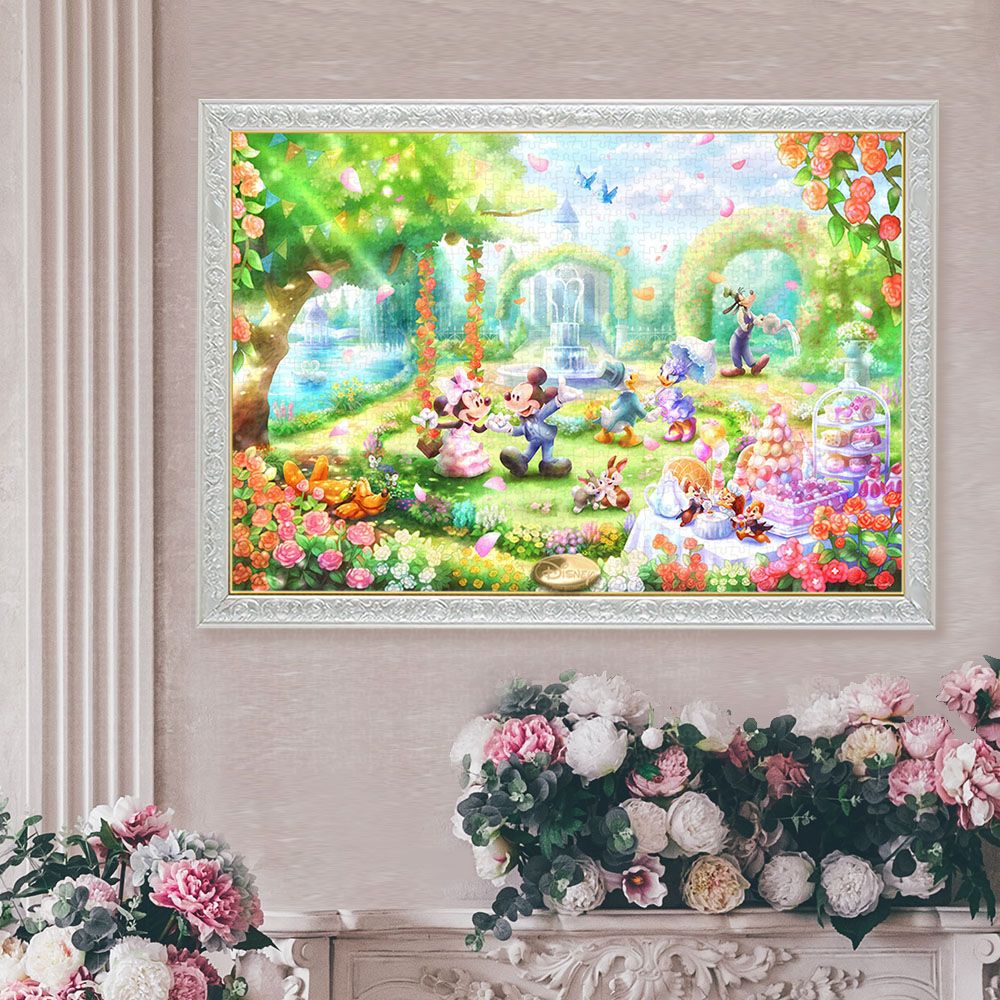 美しいバラが咲き誇るステキなお庭で、装いも優雅にガーデンパーティーを楽しんでいます。ミッキーはブランコに揺られていたミニーをやさしくエスコートしています。ピースが純白で、発色が美しく、ピタッとはまるフィット感が魅力の〈ピュアホワイト・ジグソーパズル〉です。パズル完成後、別売の専用パネルに入れて飾れば、お部屋を彩るステキなインテリアに!