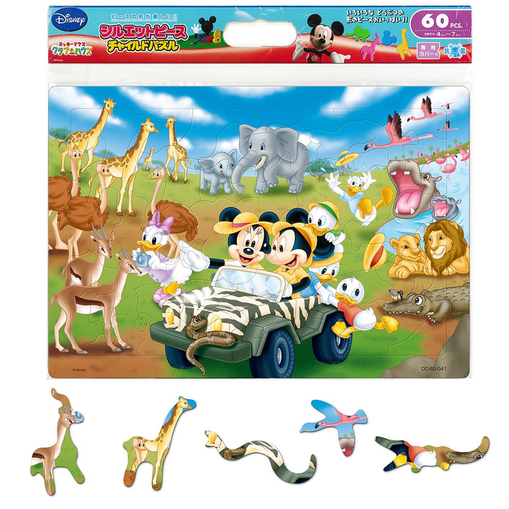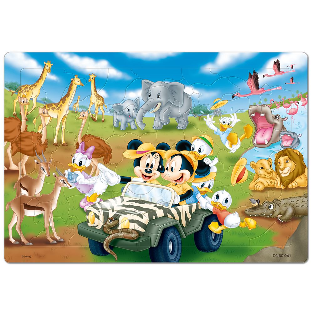 ライオン、ゾウ、キリンなど野生の動物たちとミッキーたちの楽しい絵柄。