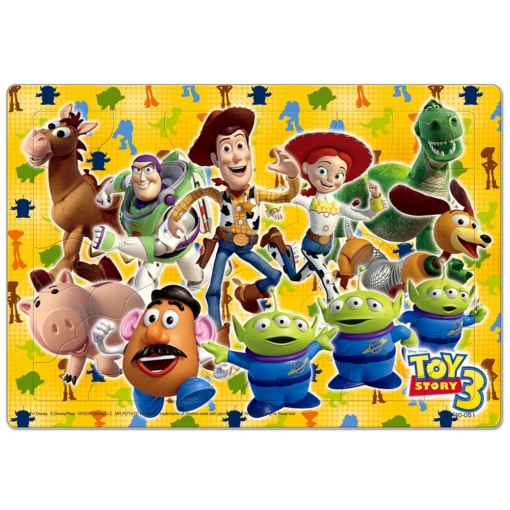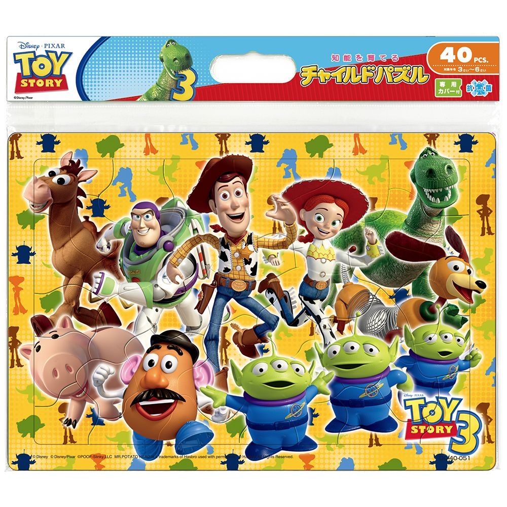 ウッディやバズなど、「トイ・ストーリー」のキャラクターたちがいっぱいの楽しい絵柄。