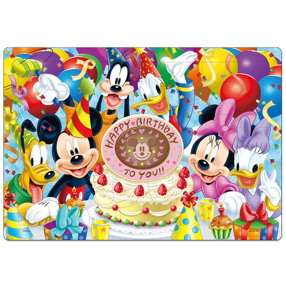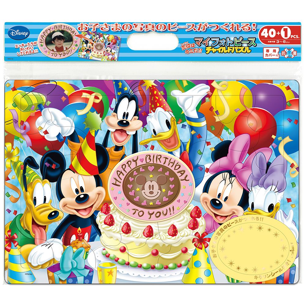 お子様の写真を中央のピースに貼ると、ミッキーたちがみんなでお祝いしてくれている、世界でひとつの特別なパズルができあがり!